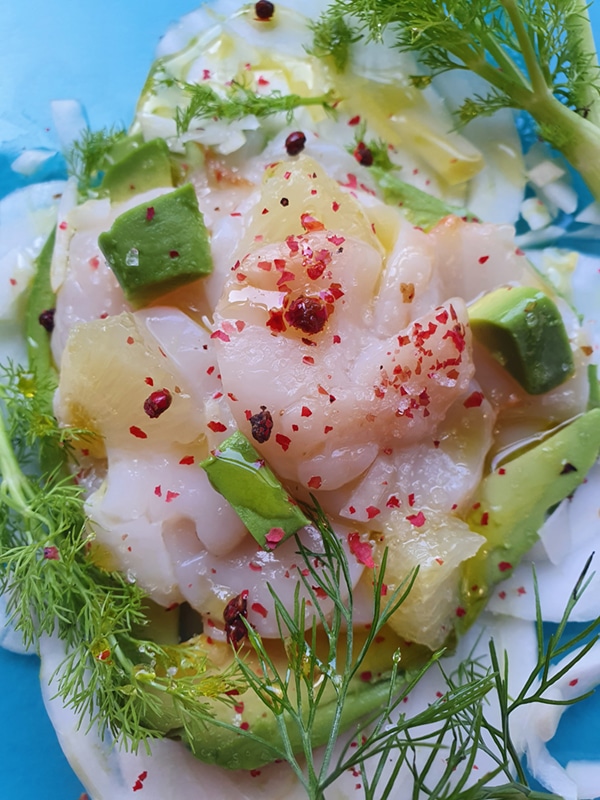 Les Saint-Jacques sont des mollusques particulièrement raffinés. Dégustée crue, la chair des noix de St Jacques s’accommode à merveille avec la fraicheur du fenouil, la douceur de l’avocat et une simple sauce citronnée. Le corail est délicieux lui aussi, juste poêlé 3 minutes dans un peu de beurre ou d’huile.